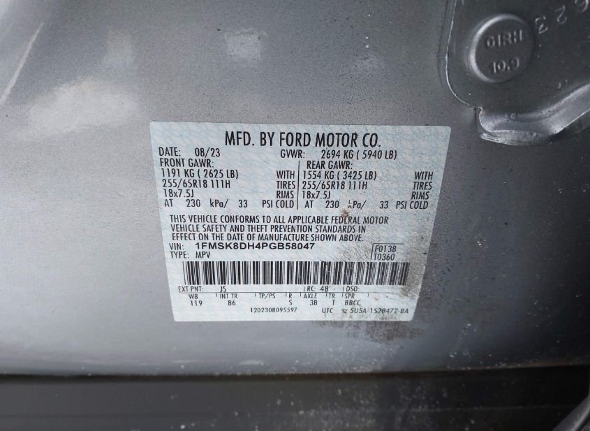 - VIN: 1FMSK8DH4PGB58047