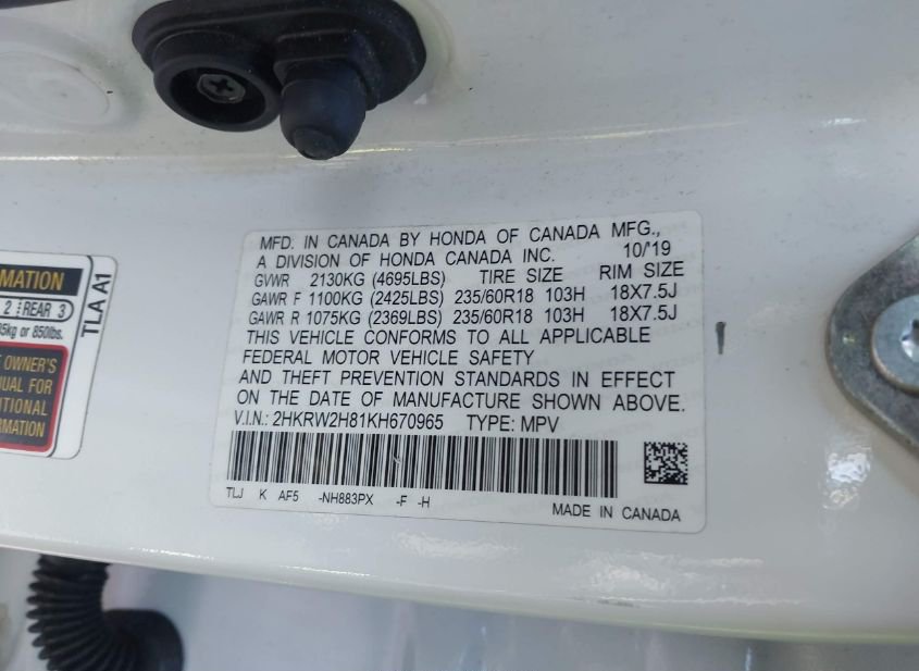 - VIN: 2HKRW2H81KH670965