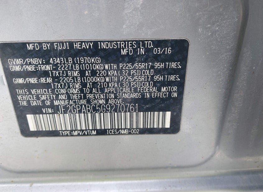 - VIN: JF2GPABC5G9270761