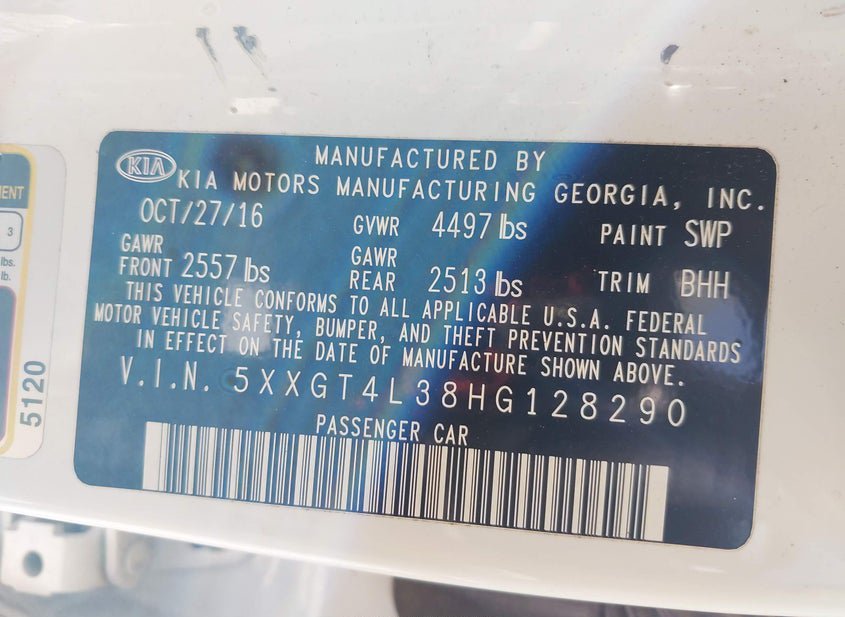 - VIN: 5XXGT4L38HG128290