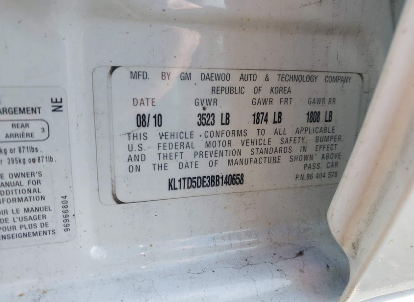 - VIN: KL1TD5DE3BB140658