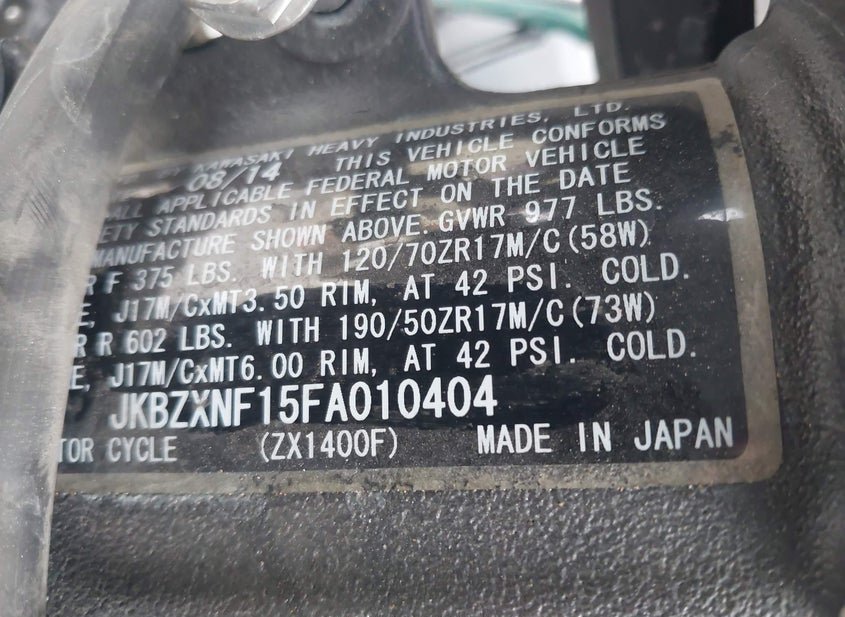 - Название лота: 2015 KAWASAKI ZX1400 F