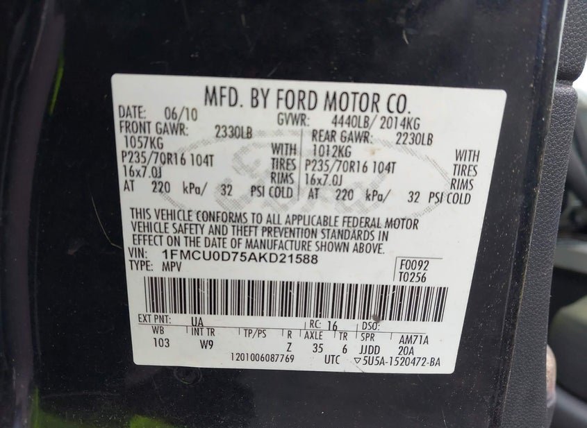 - VIN: 1FMCU0D75AKD21588
