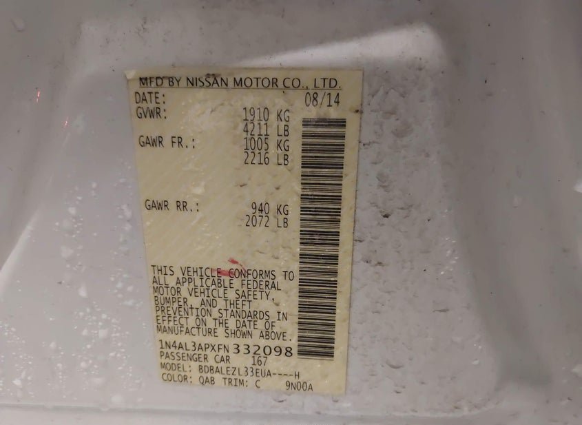 - Название лота: 2015 NISSAN ALTIMA 2.5 S