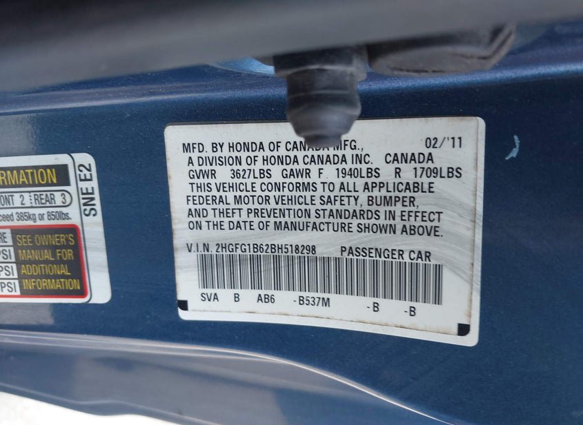 - VIN: 2HGFG1B62BH518298