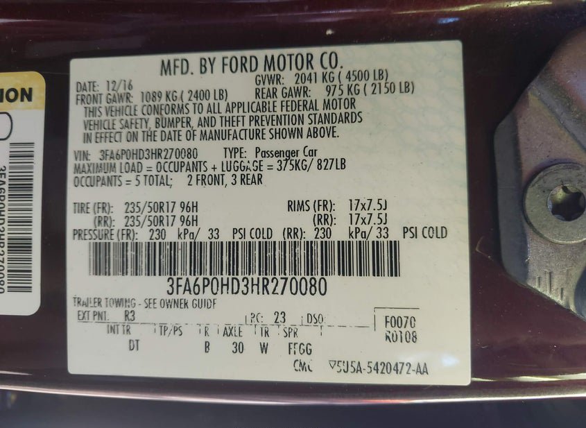 - VIN: 3FA6P0HD3HR270080