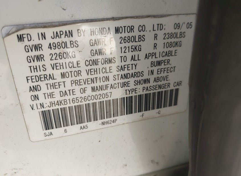 - VIN: JH4KB16526C002057
