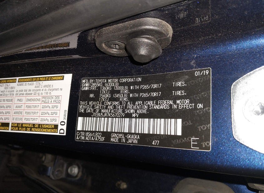 - VIN: JTEBU5JR7K5670279