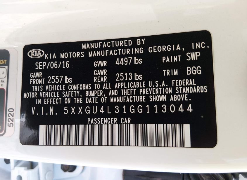 - VIN: 5XXGU4L31GG113044
