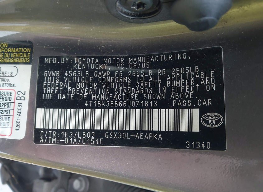 - VIN: 4T1BK36B66U071813