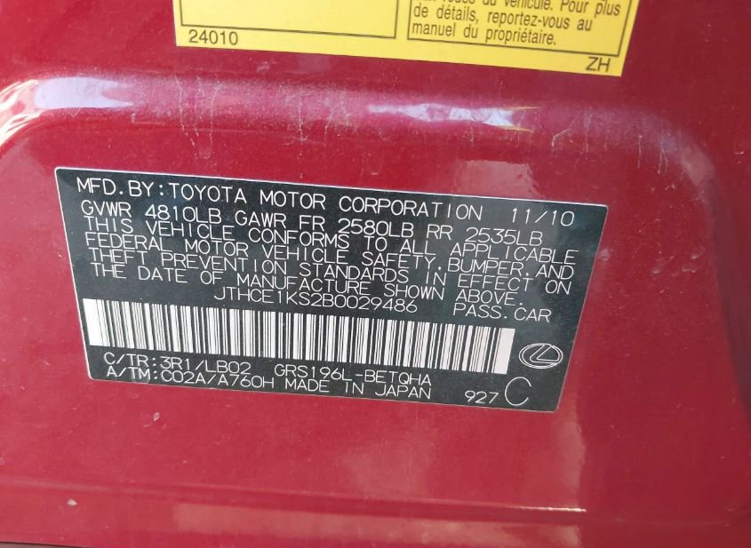 - VIN: JTHCE1KS2B0029486