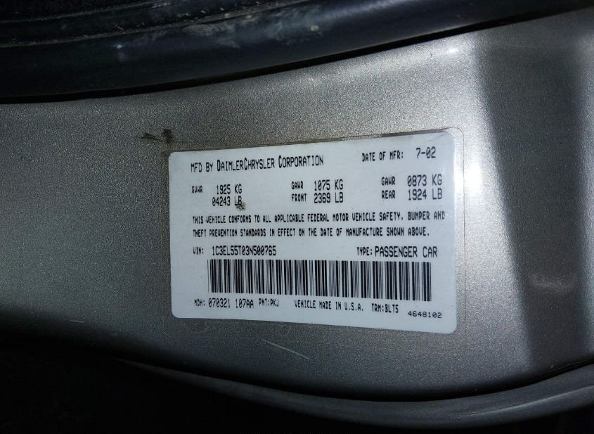 - VIN: 1C3EL55T03N500765