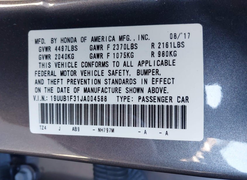 - VIN: 19UUB1F31JA004588