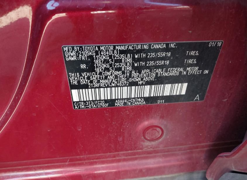 - VIN: 2T3RFREV1JW746372
