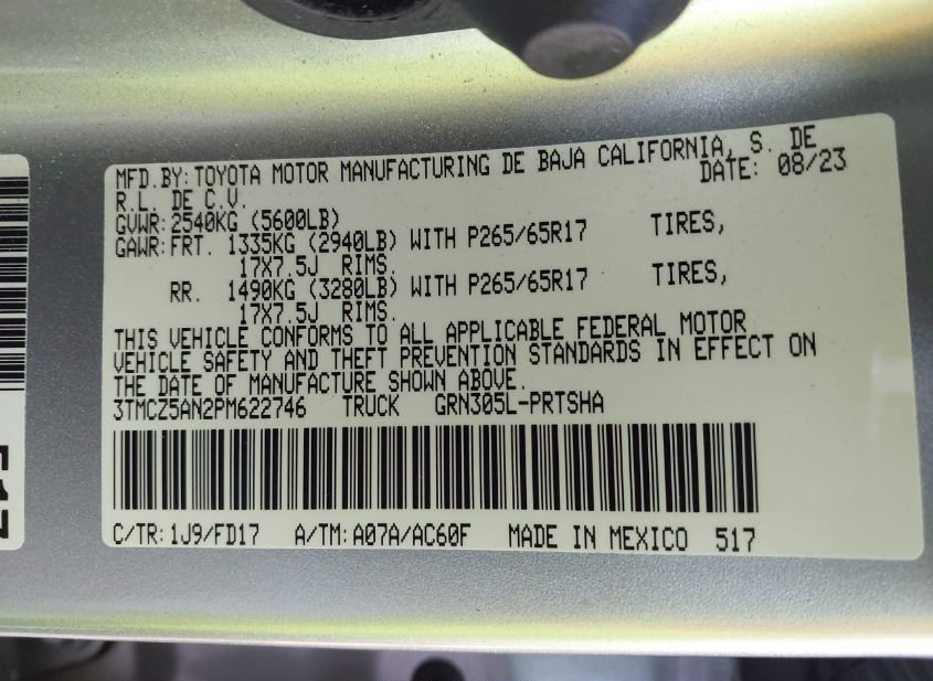 - VIN: 3TMCZ5AN2PM622746