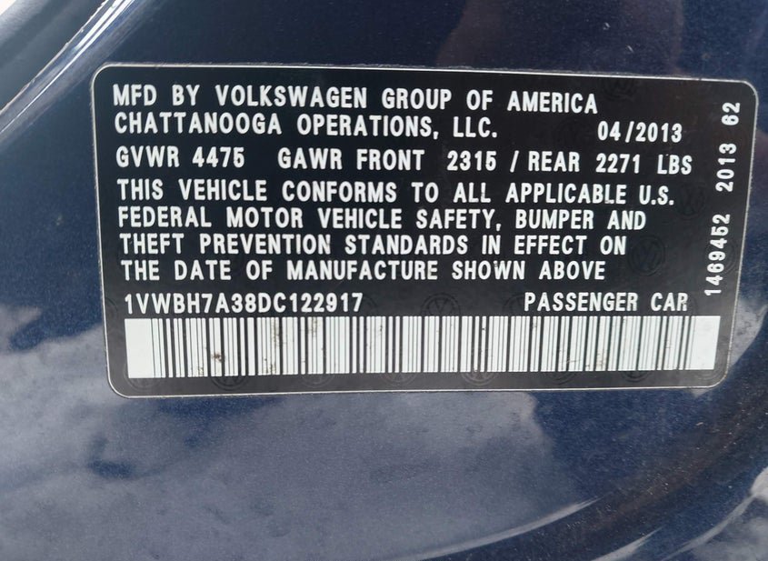 - VIN: 1VWBH7A38DC122917
