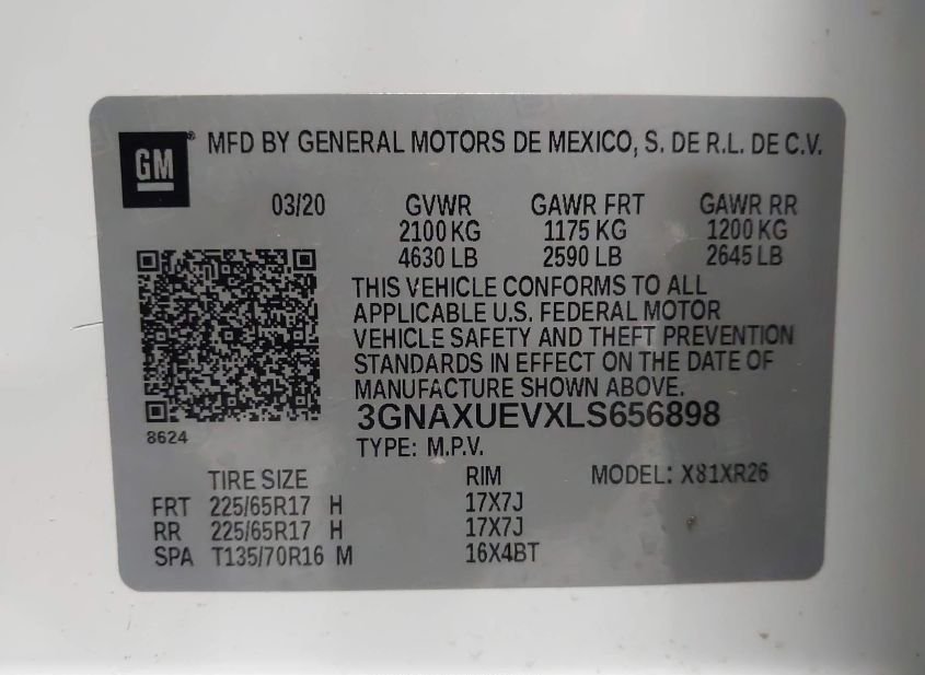 - VIN: 3GNAXUEVXLS656898