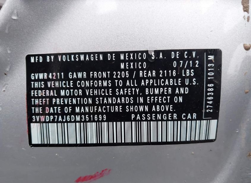 - VIN: 3VWDP7AJ6DM351699