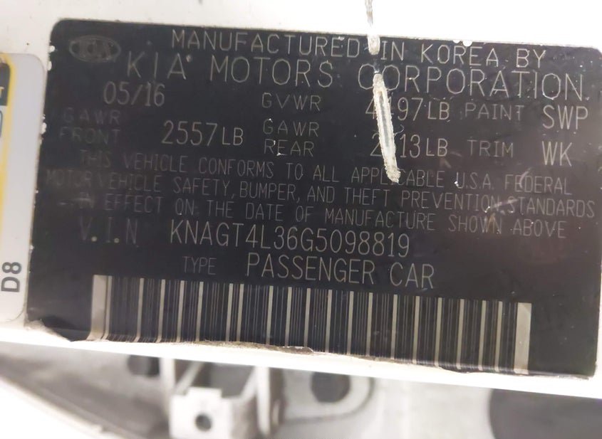 - VIN: KNAGT4L36G5098819