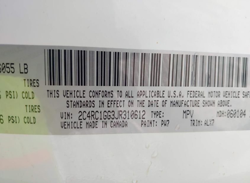 - VIN: 2C4RC1GG3JR310612