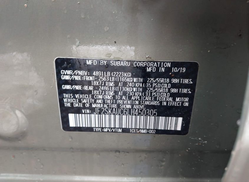 - VIN: JF2SKAUC6LH450305