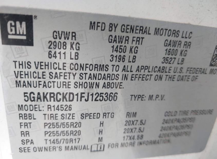 - VIN: 5GAKRCKD1FJ125366