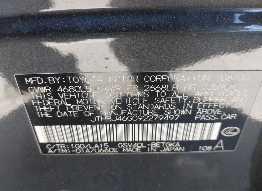 - Название лота: 2009 LEXUS ES 350