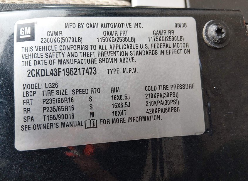 - VIN: 2CKDL43F196217473