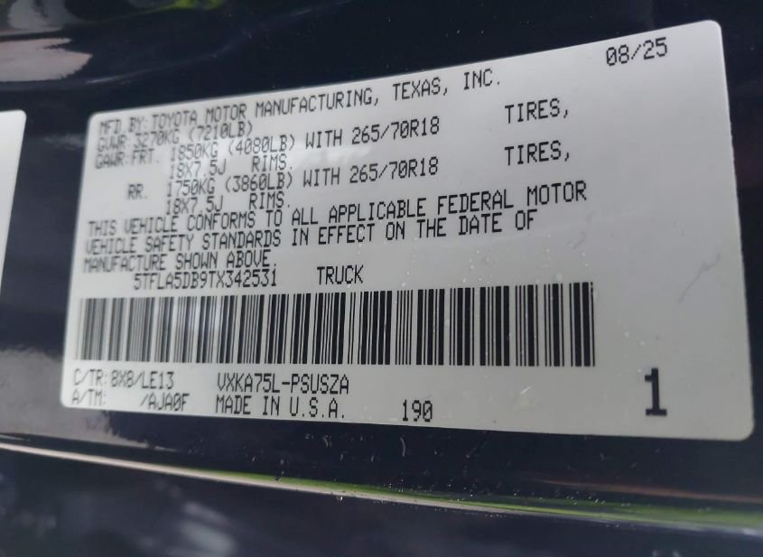 - VIN: 5TFLA5DB9TX342531