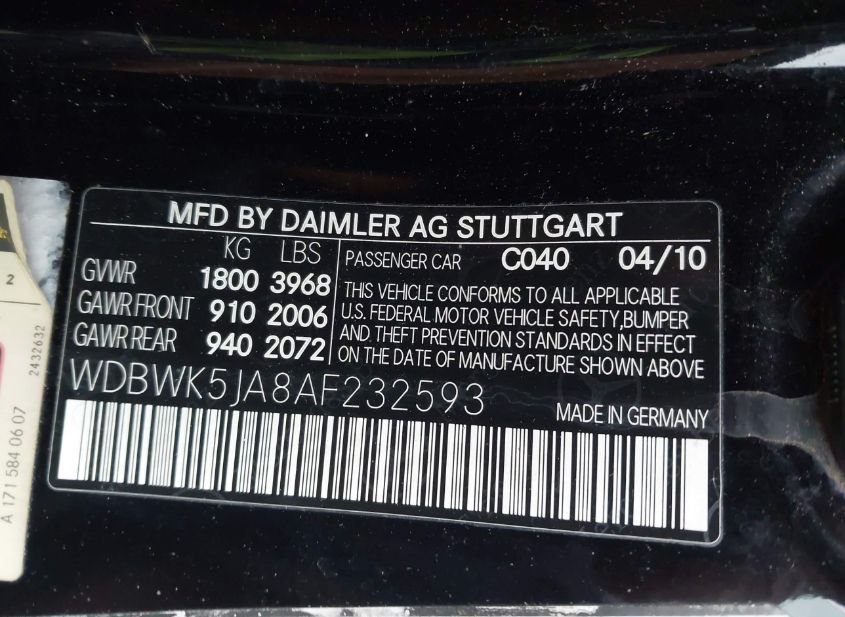 - VIN: WDBWK5JA8AF232593