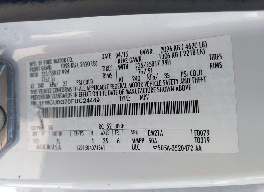- VIN: 1FMCU0G70FUC24449