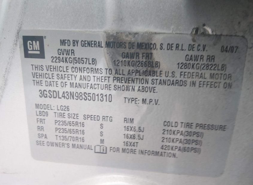 - VIN: 3GSDL43N98S501310