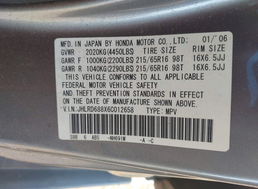 - VIN: JHLRD688X6C012658