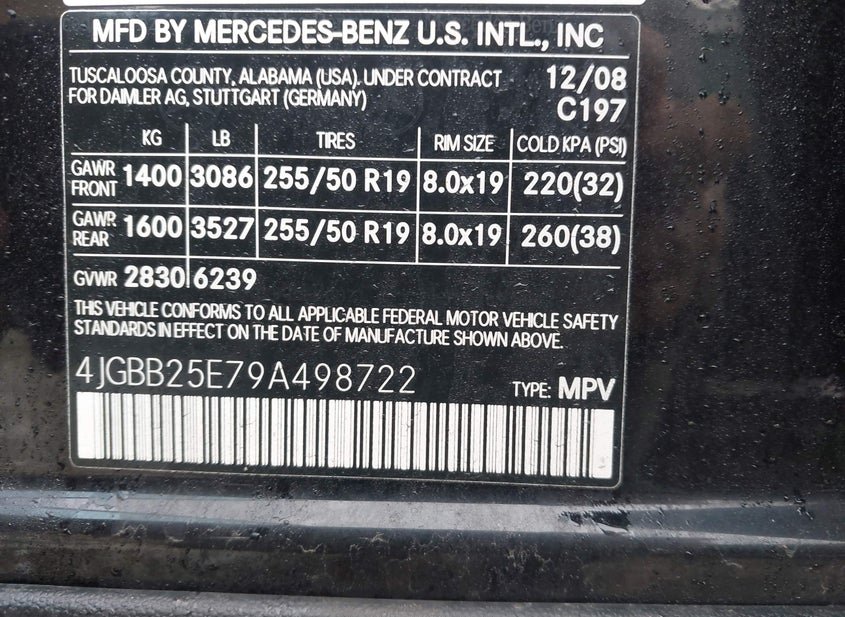 - VIN: 4JGBB25E79A498722