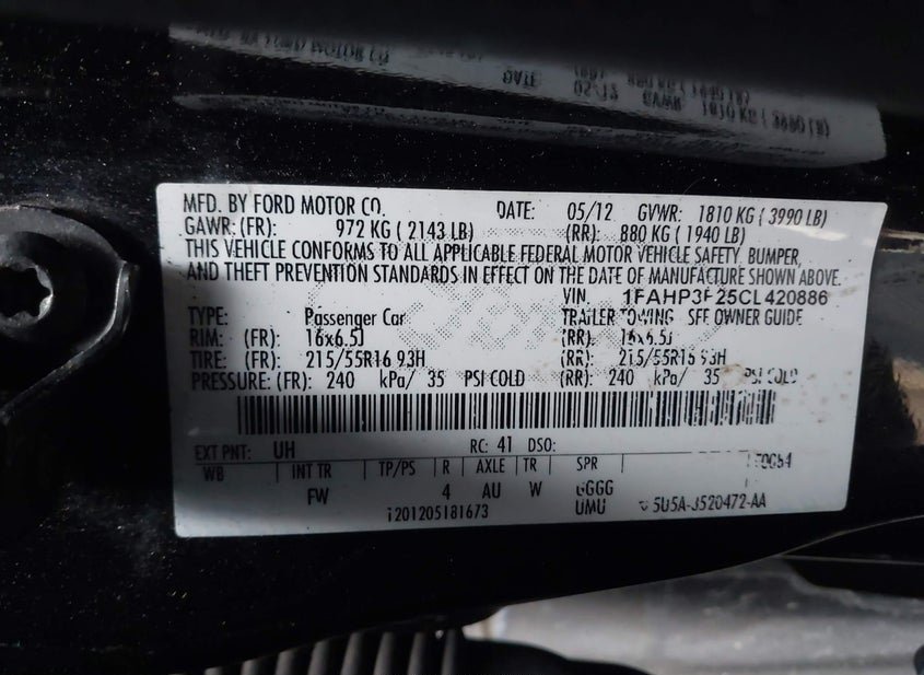 - VIN: 1FAHP3F25CL420886