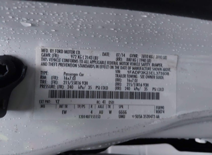 - VIN: 1FADP3K23EL375938