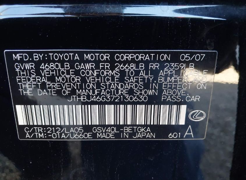 - VIN: JTHBJ46G372130630