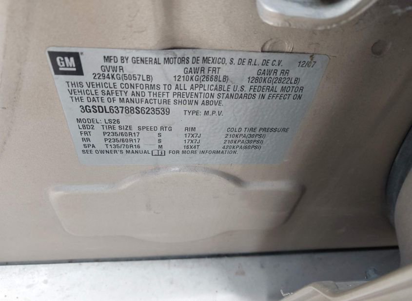 - VIN: 3GSDL63788S623539