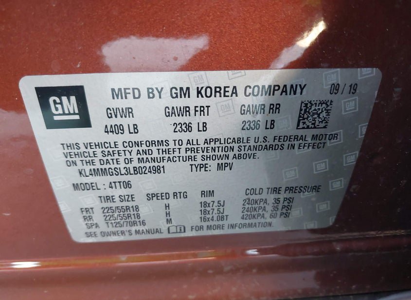 - VIN: KL4MMGSL3LB024981