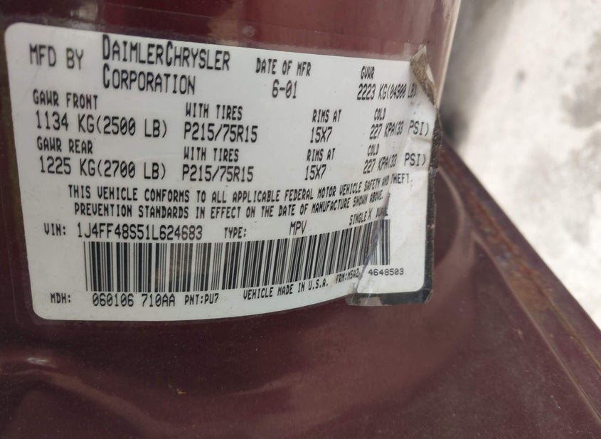 - VIN: 1J4FF48S51L624683