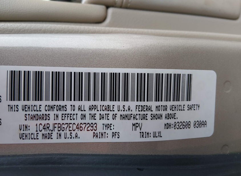 - VIN: 1C4RJFBG7EC467293