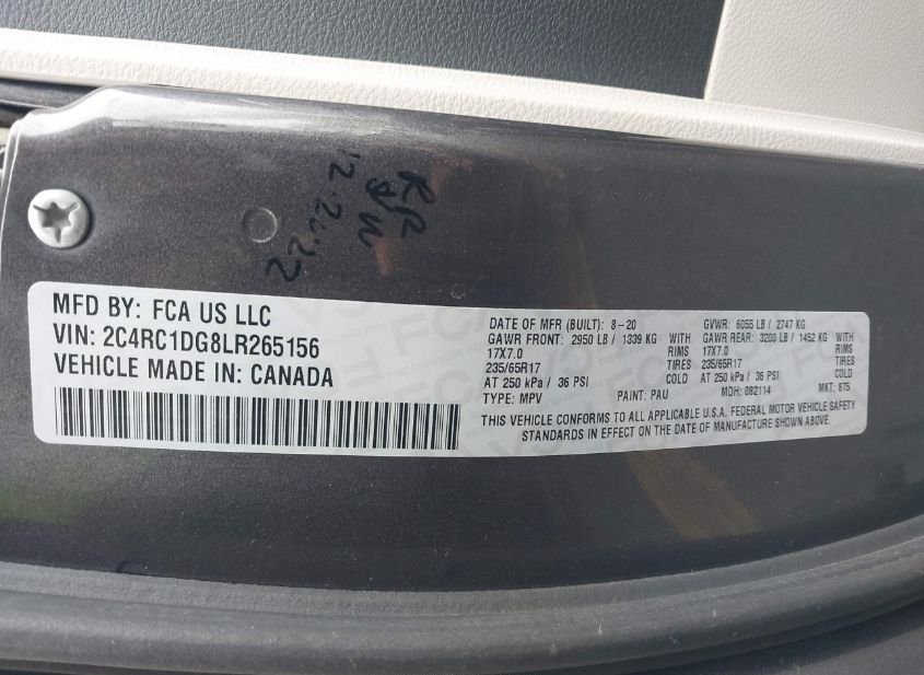 - VIN: 2C4RC1DG8LR265156