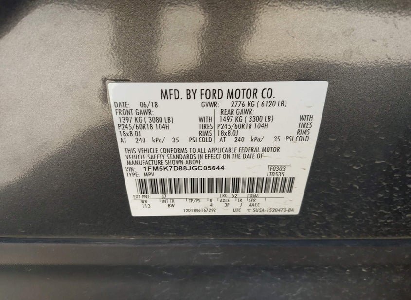 - VIN: 1FM5K7D88JGC05644