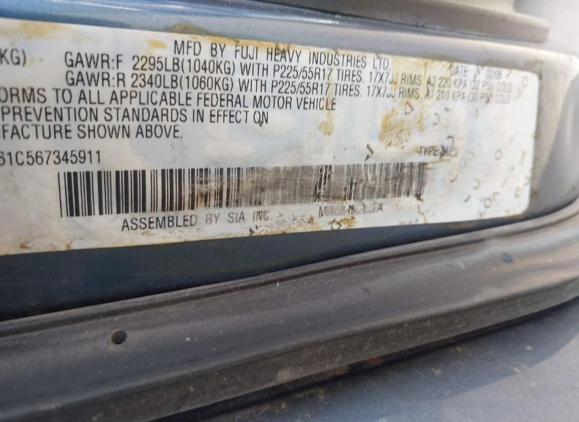 - Название лота: 2006 SUBARU OUTBACK 2.5I
