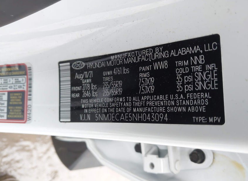 - VIN: 5NMJECAE5NH043094