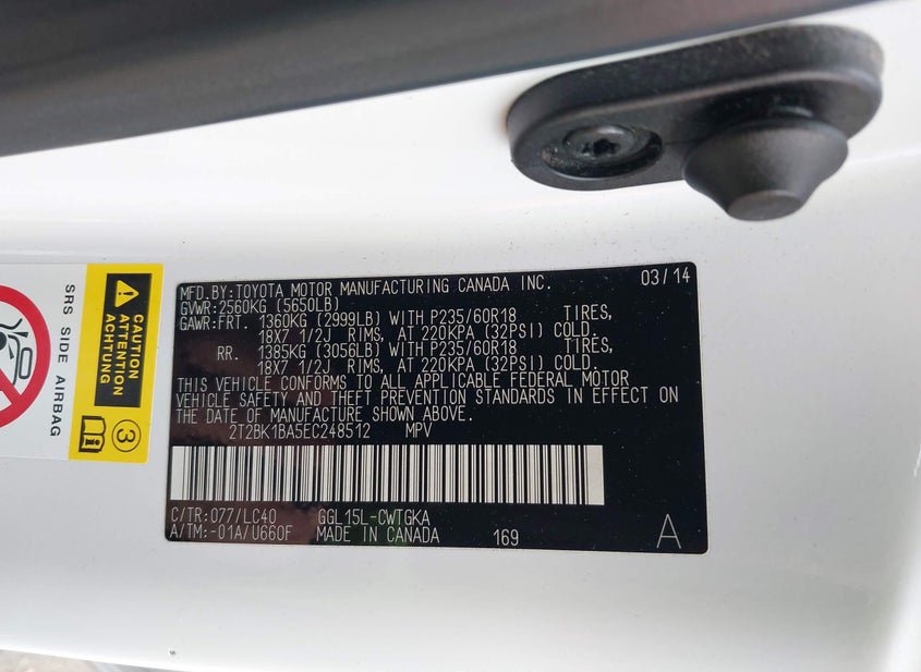 - VIN: 2T2BK1BA5EC248512