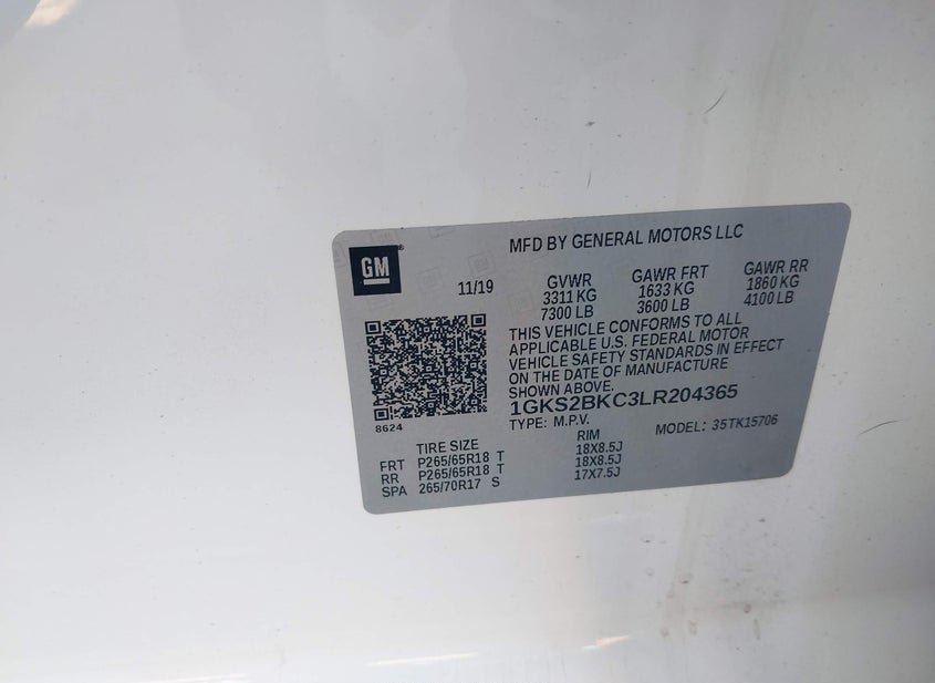- VIN: 1GKS2BKC3LR204365