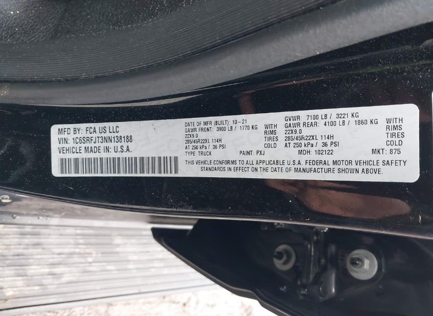 - VIN: 1C6SRFJT3NN138188