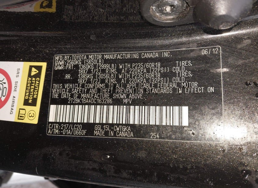- VIN: 2T2BK1BA4DC163286