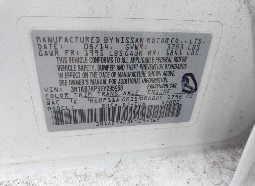 - VIN: 3N1AB7AP3EY295968